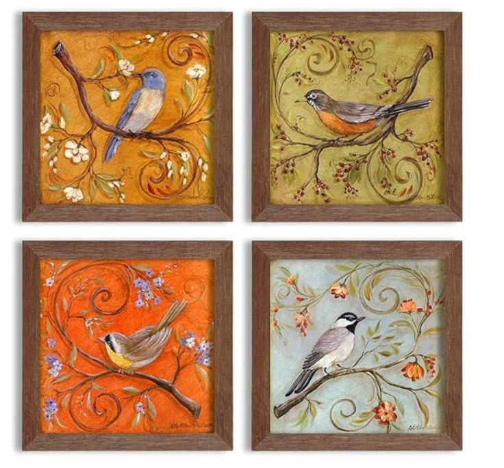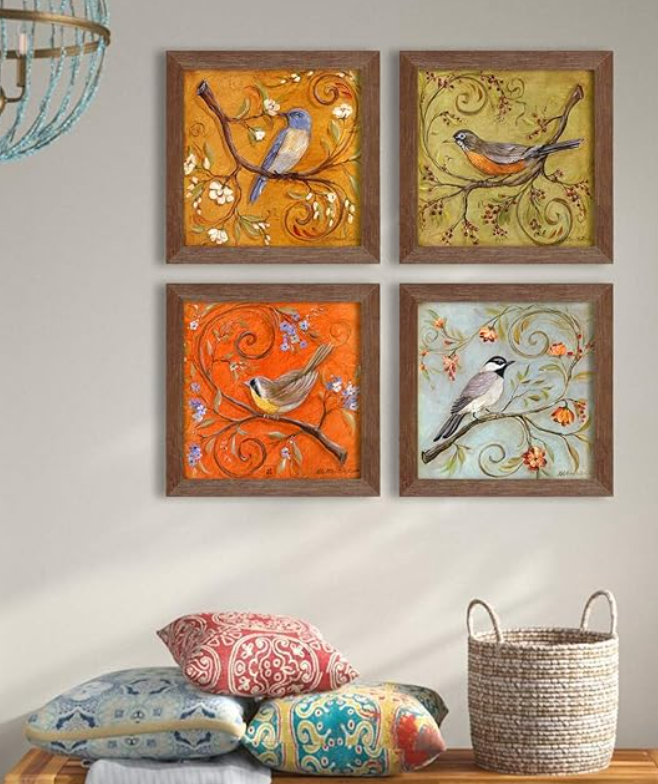 Painting Mantra Floral & Birds Theme Framed Painting/Posters for Room Decoration, Set of 4 Brown Frame UV Textured Art Prints/Posters for Living Room by Painting Mantra (4 Unit, 9 x 9 Inches)